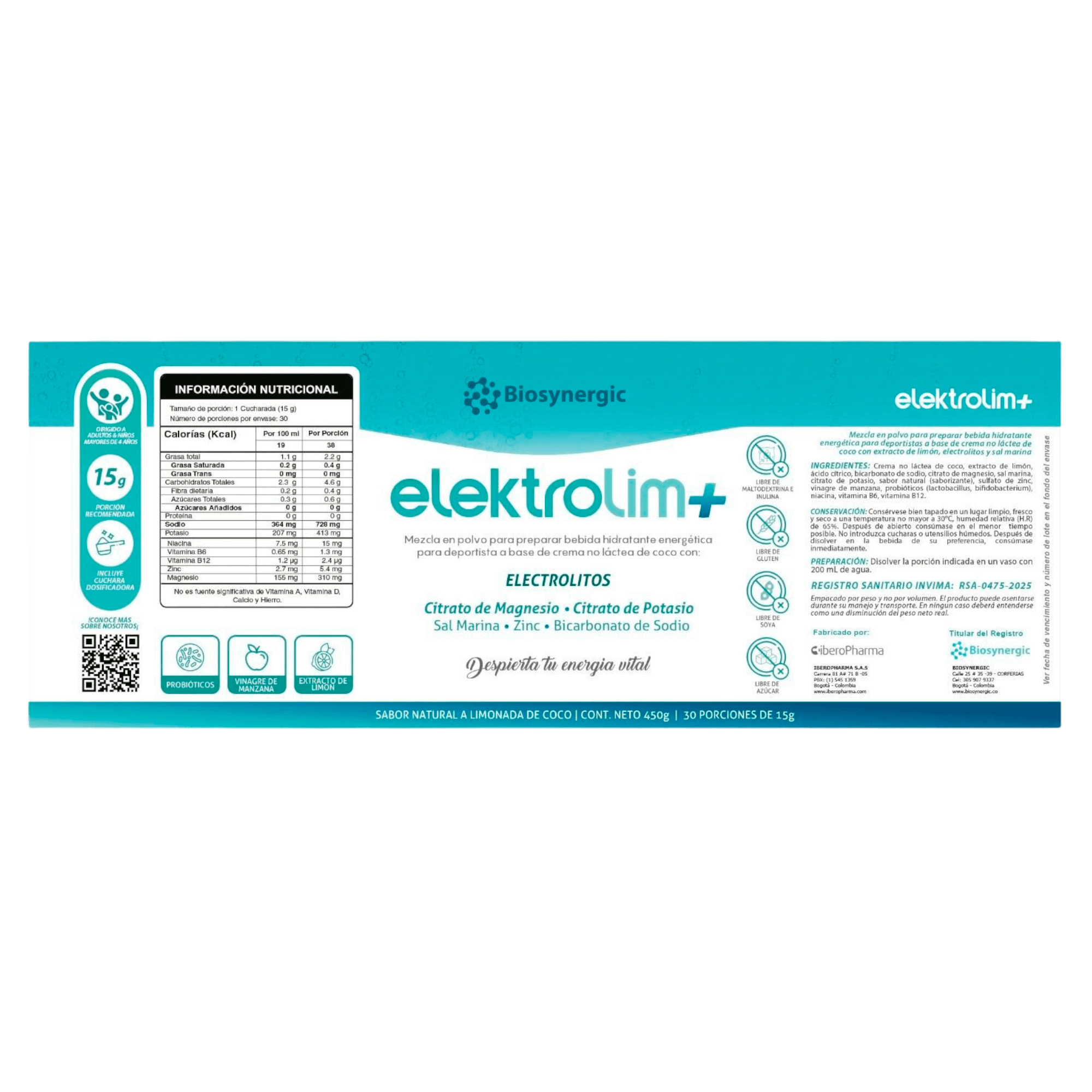 EleKtroLim+ | MAGNESIO + POTASIO + SAL MARINA + BICARBONATO DE SODIO + ZINC + VITAMINAS + PROBIÓTICOS
